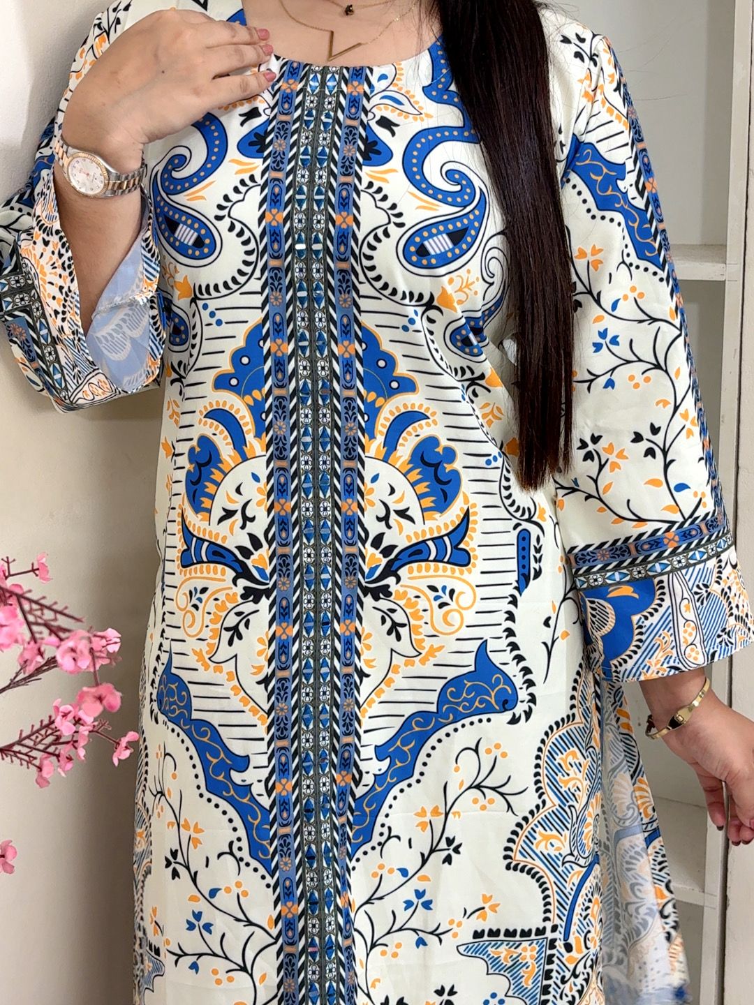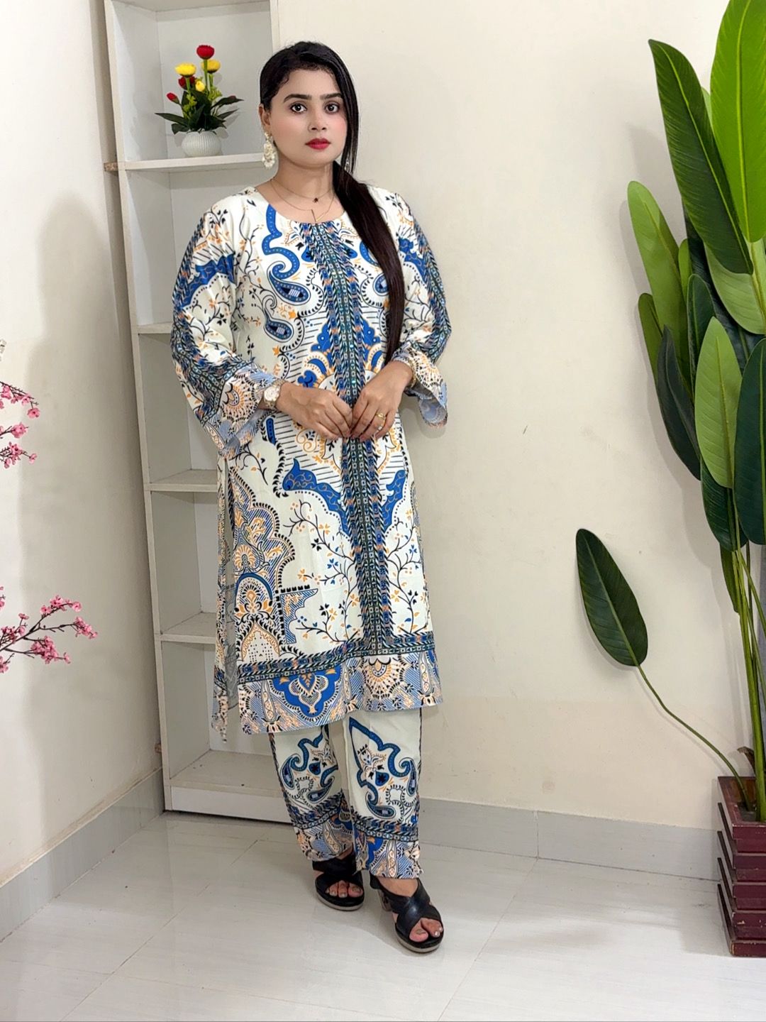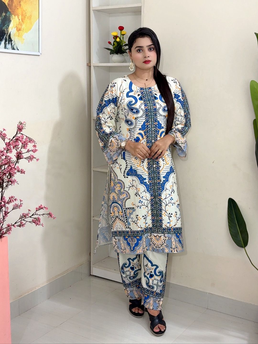 Cotton Digital Print with Mirror Work (2 Pcs Set) – আধুনিক ডিজাইন এবং আরামদায়ক ১০০% কটন ফ্যাব্রিকের সাথে তৈরি ২ পিস শারারা সেট। ডিজিটাল প্রিন্ট এবং হাতে তৈরি মিরর ওয়ার্কের মাধ্যমে এই পোশাকটি আপনার ফ্যাশনকে নতুন দ্যুতি দেবে। ১০০% কালার গ্যারান্টি এবং আরামদায়ক ফিট নিশ্চিত করে সারা দিন পরিধানযোগ্য। সাইজ: L, XL, XXL।